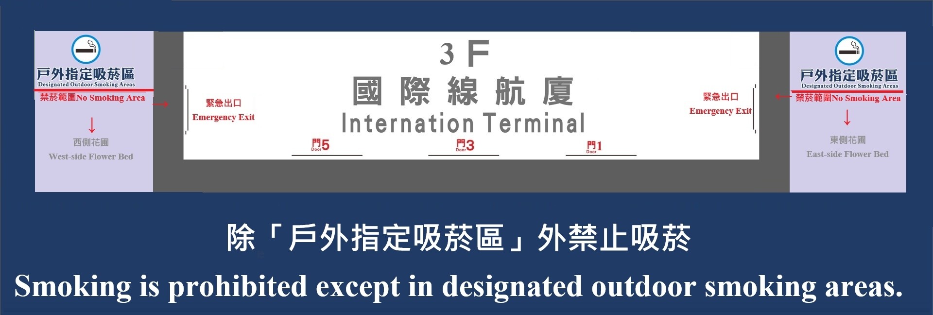 2.國際線3樓:東側花台吸菸區、西側花台吸菸區