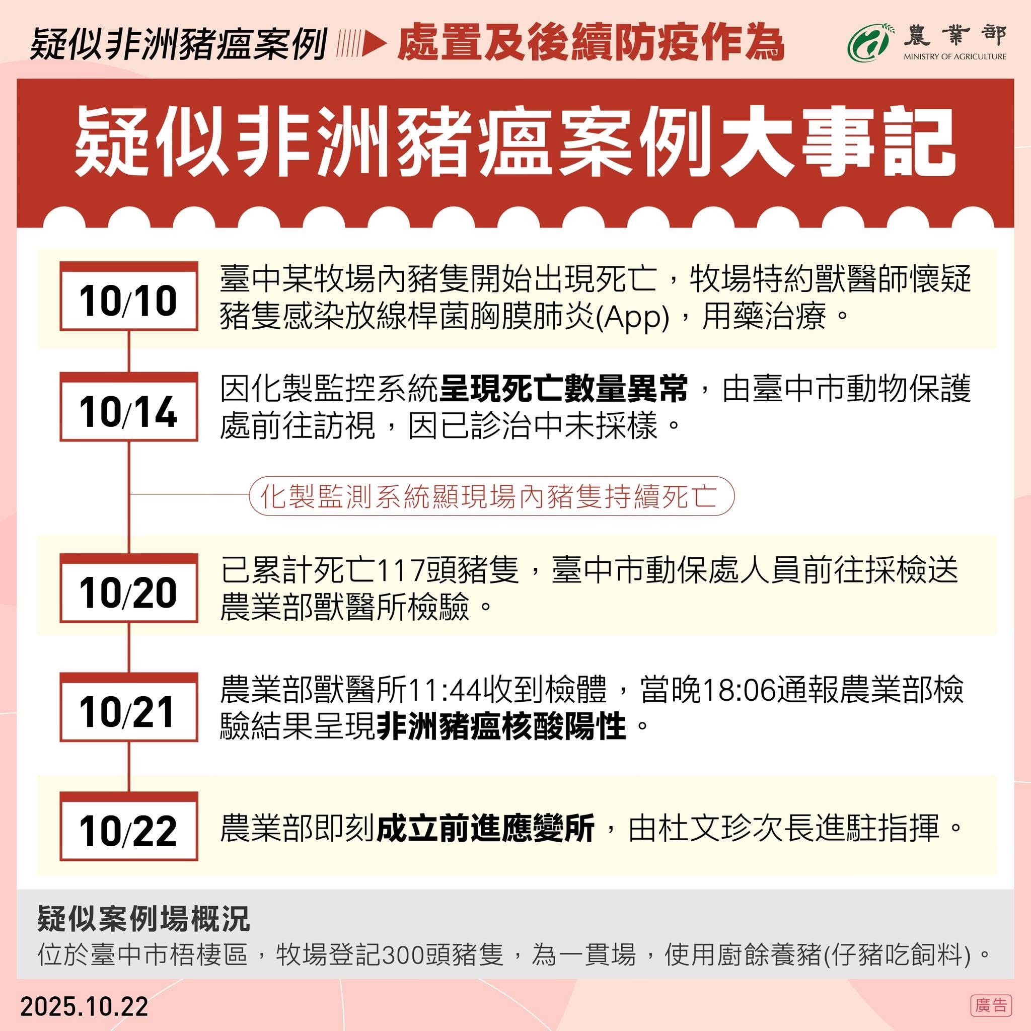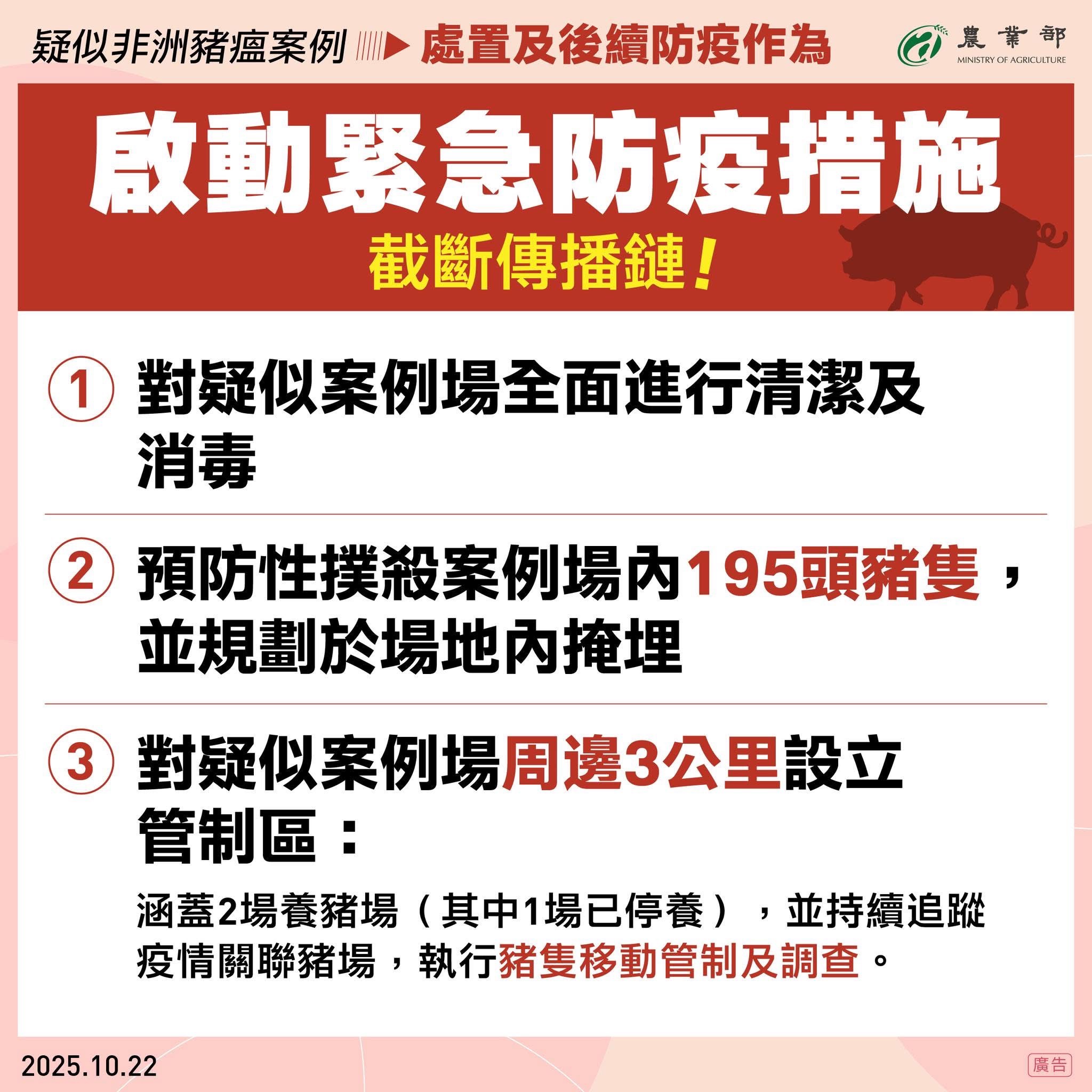 防範非洲豬瘟,請勿攜帶豬肉產品入境 2025-10-23 營運安全組-Fish 為防範非洲豬瘟入侵,保護我國畜牧產業安全,提醒民眾切勿自國外攜帶、網購或寄送豬肉及相關製品入境。 再確認一次!讓出國回憶不蒙灰 汪汪出擊!入境臺灣「這些」不能帶! 小心!回國前的最後採購你踩雷了嗎? 狗狗坐下了!你的行李是不是有...